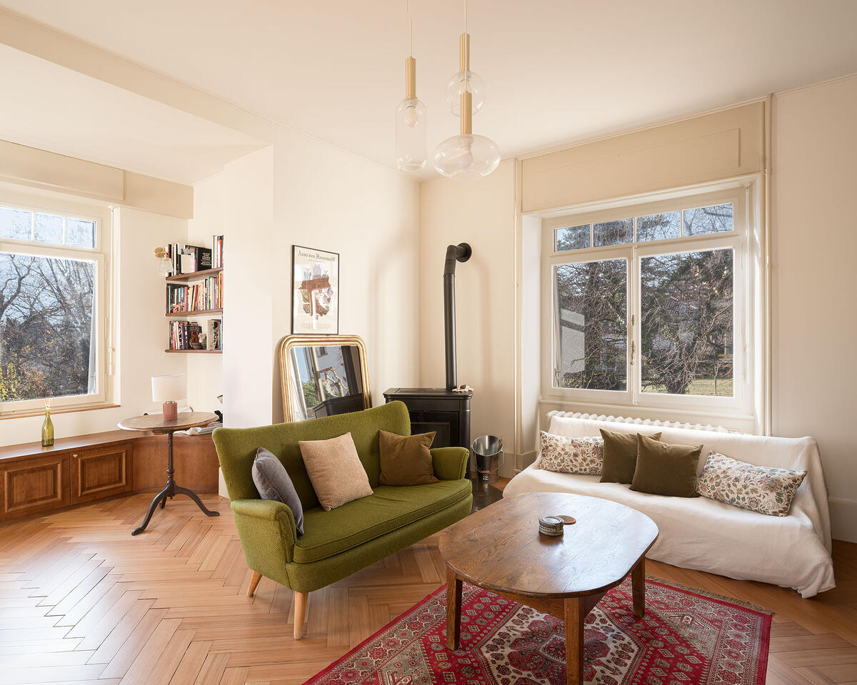 Les anciens poêles, ne respectant plus les normes actuelles, sont gardés et remis en valeur dans le projet.